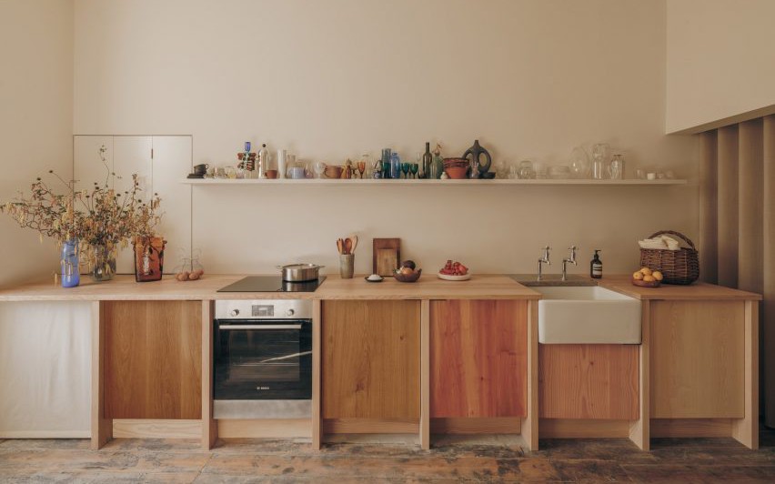 Gian bếp làm bằng gỗ tái chế của căn hộ ở Edinburgh – Ảnh: Richard Gaston/Dezeen