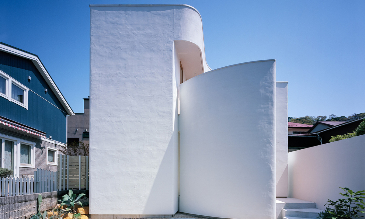 Nhật BảnCăn nhà nằm trong khu dân cư chật hẹp, được bố trí xoay quanh khoảng sân trung tâm để tận dụng ánh sáng và kết nối các tầng.