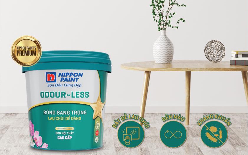 Với sơn nội thất cao cấp “Nippon Odour-less Bóng Sang Trọng”, Nippon Paint mang đến một chuẩn mực trong sơn nội thất: “SANG – SẠCH – XANH”, giúp gia chủ thể hiện phong cách và dấu ấn cá nhân mà không lo lắng gì với các vết bẩn và vi khuẩn; vì màng sơn còn có khả năng ngăn chặn sự sinh sôi của các vi khuẩn, mầm bệnh ngay khi tiếp xúc, giúp giữ cho bề mặt luôn sạch sẽ và an toàn.