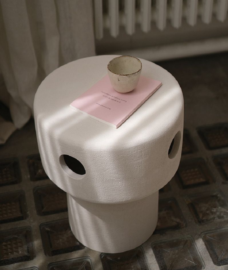 Ghế đẩu, đèn của các nhà thiết kế gốm sứ Se′verine Duparc và Johanna de Clisson rất ấn tượng với thiết kế đục lỗ nhìn như những chiếc tổ chim nhỏ.