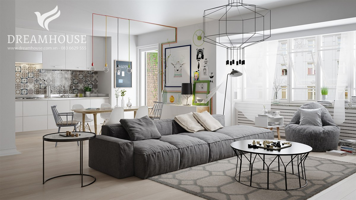Thiết kế phòng khách 30m2 phong cách Bắc Âu